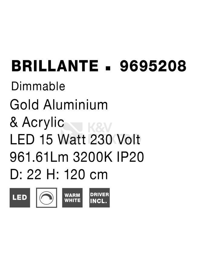 Závěsné LED svítidlo NOVA LUCE BRILLANTE 16W 3200K 9695208 stmívatelné Triac disponuje dobrým poměrem cena/výkon od prověřeného výrobce NOVA LUCE. Další informace k produktu naleznete níže.