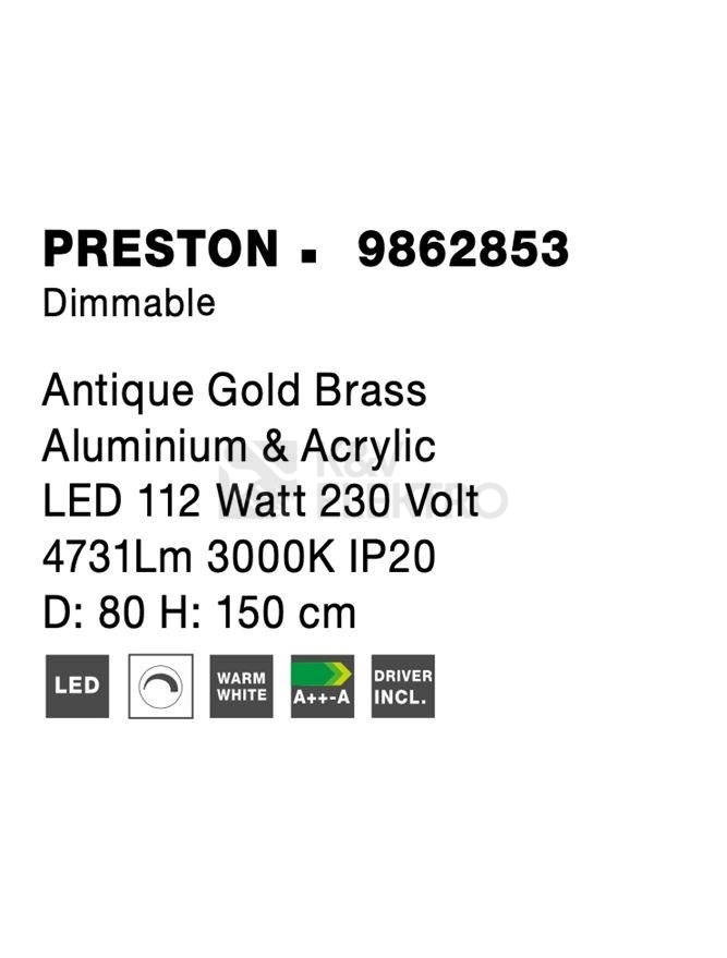 Závěsné LED svítidlo NOVA LUCE PRESTON 112W 3000K 9862853 stmívatelné Triac disponuje dobrým poměrem cena/výkon od prověřeného výrobce NOVA LUCE. Další informace k produktu naleznete níže.