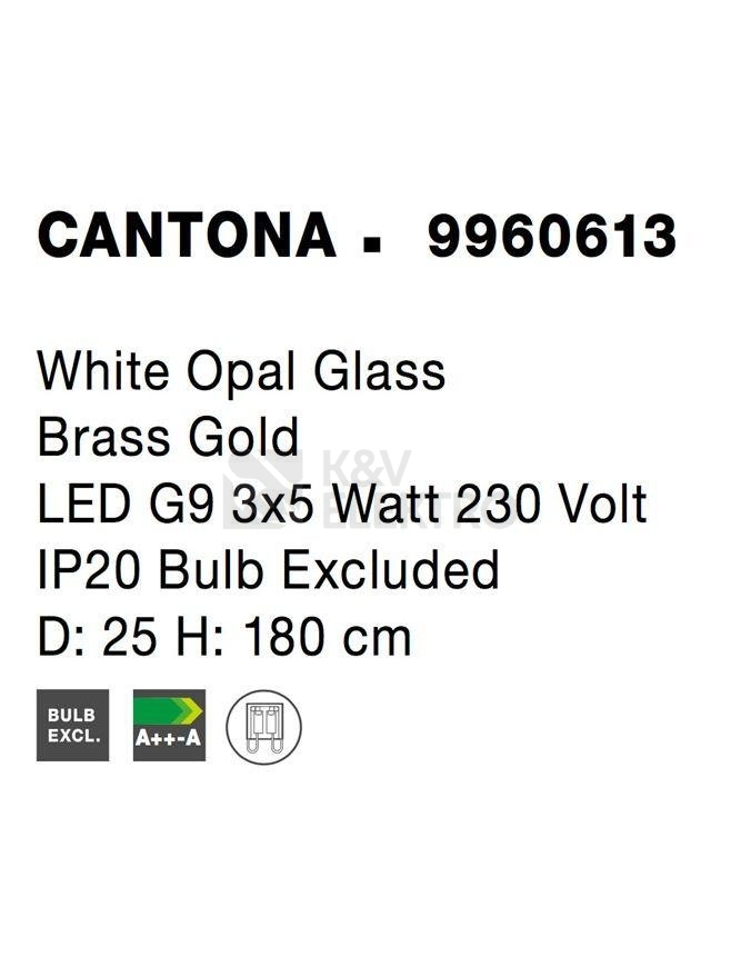 Závěsné svítidlo NOVA LUCE CANTONA G9 9960613 bez žárovky disponuje dobrým poměrem cena/výkon od prověřeného výrobce NOVA LUCE. Další informace k produktu naleznete níže.
