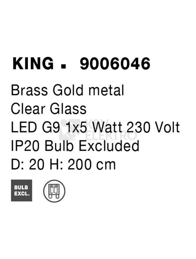 Závěsné svítidlo NOVA LUCE KING G9 9006046 bez žárovky disponuje dobrým poměrem cena/výkon od prověřeného výrobce NOVA LUCE. Další informace k produktu naleznete níže.