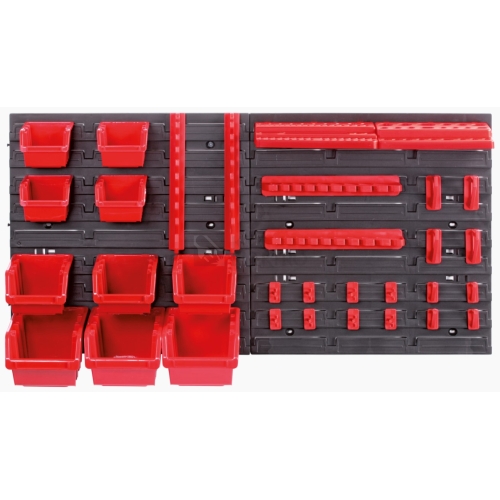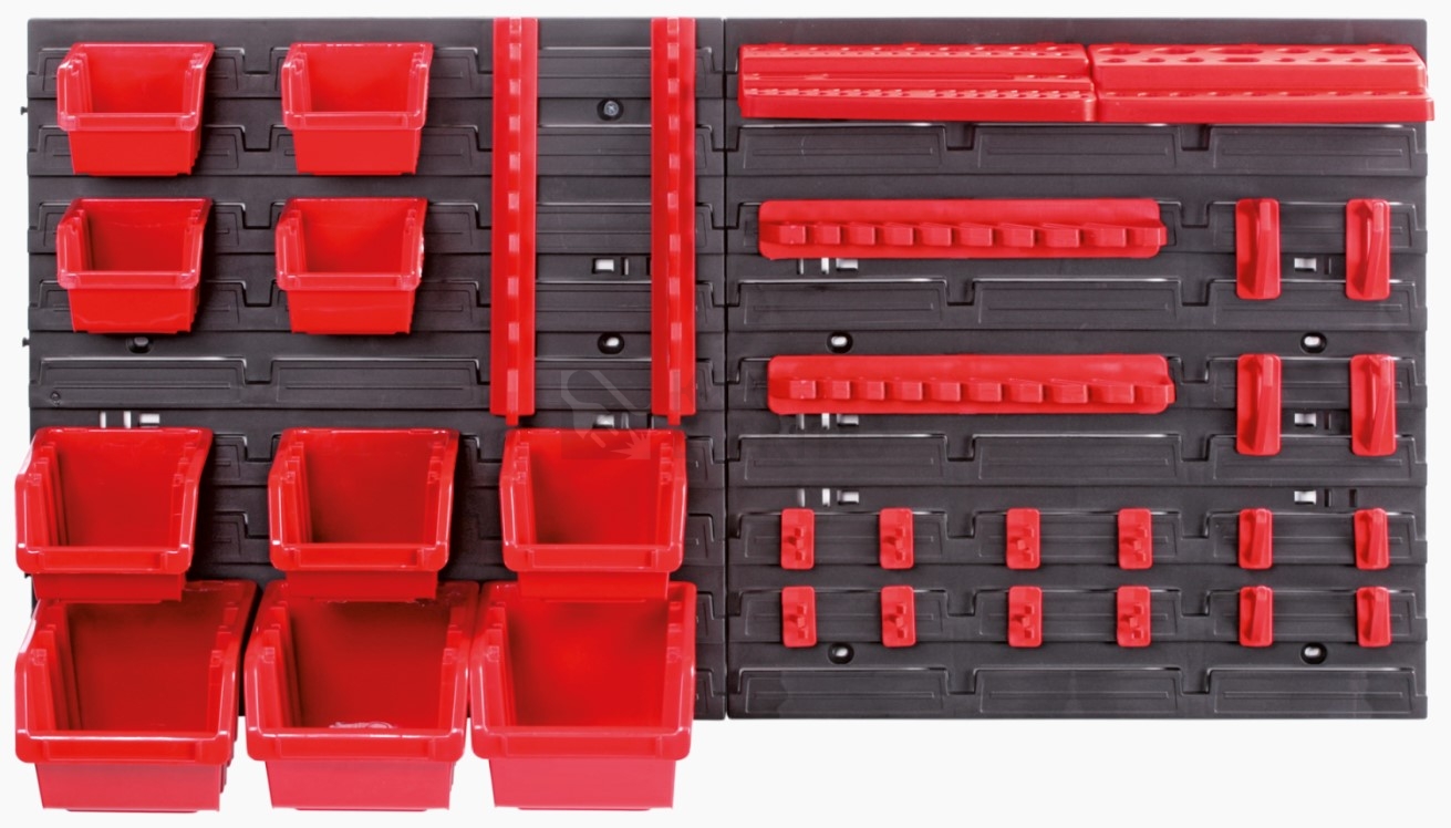 Závěsný systém + 10 boxů a 22 držáků na nářadí ORDERLINE 800 x 195 x 400 mm.